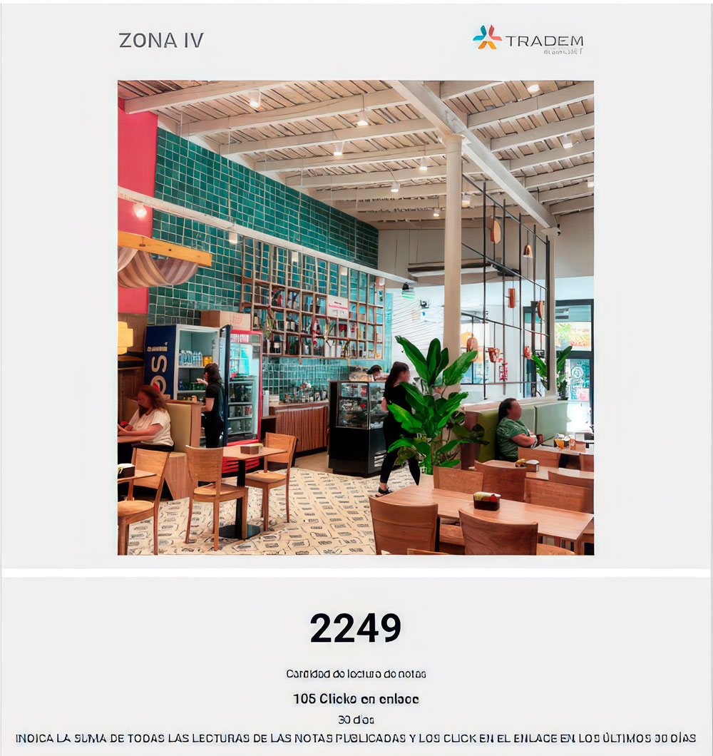 El nuevo RRG cuenta con una nueva estética y la incorporación del acumulado total de lecturas y clicks, siendo este primer indicador que se visualiza arriba de todo. Se mantiene la medición de valores tanto de lecturas como de clicks en enlaces, para los últimos 30 días y las ultimas 24 hs.