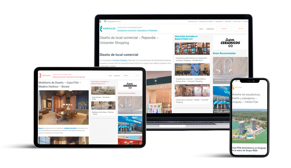 Aprovechando la migración antes mencionada, se realizó una modernización de las plataformas de publicación de los tres medios (Espacio, Design, Style) maximizando velocidad e integración. Esto permite un aumento significativo en la visibilidad de la nota desplegada como así también de las ventanas de los videos asociados